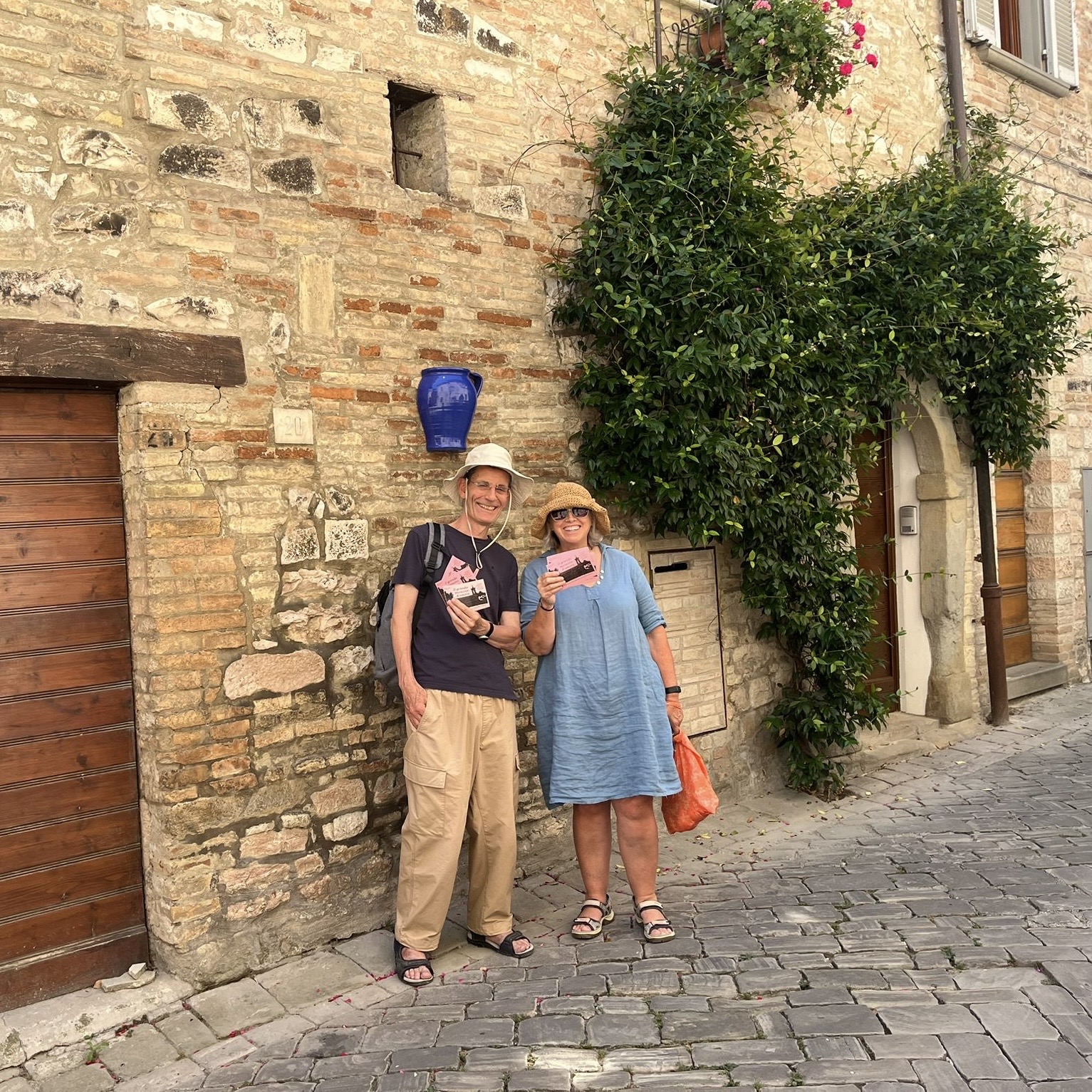 I speak about 5 words of Italian – allegro, ritardando, piano, piu Forte and Scusi. So in town I have to learn Invito, and Concerto,(not difficult, that one) in order to hand out flyers for our little concert….Here I am with alto Judy…..