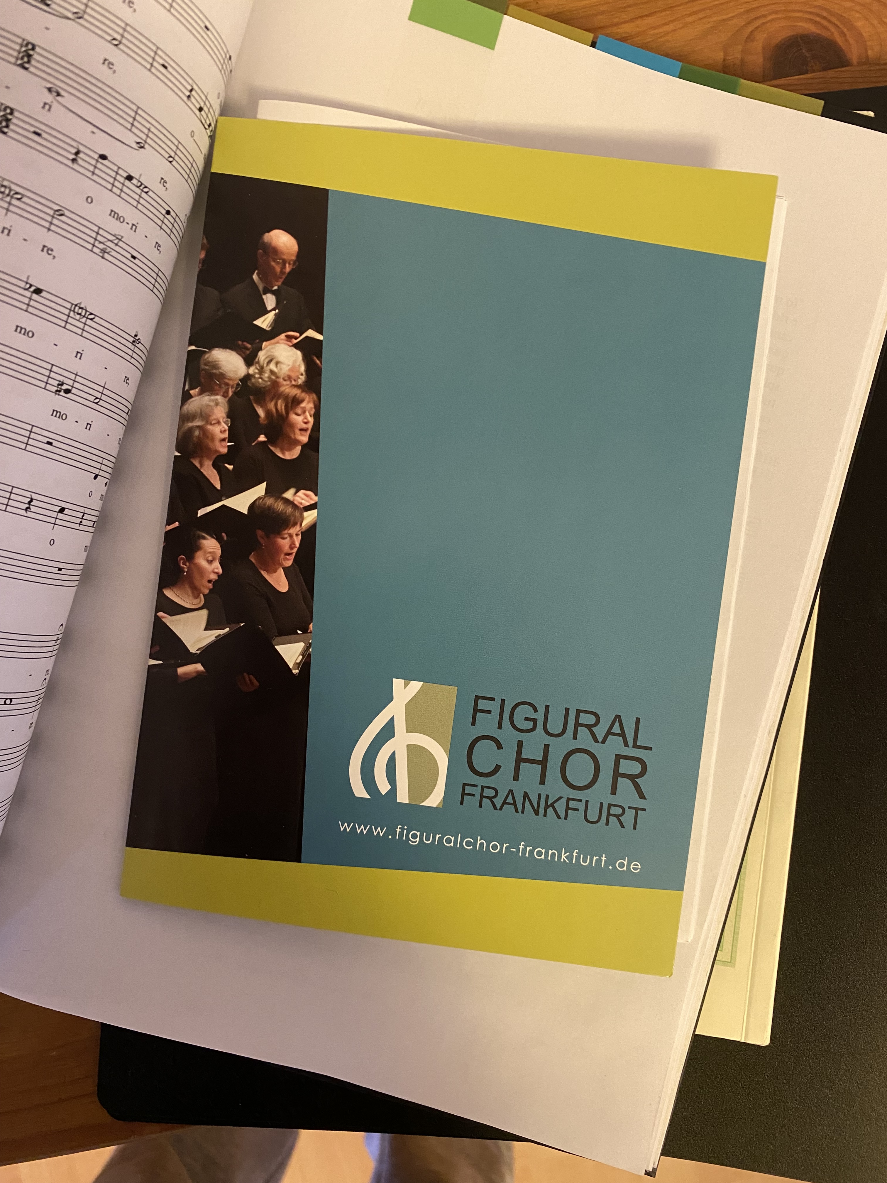 ⇒ I’ve just sung my first concert with the Frankfurt Figuralchor, in a concert venue I didn’t know existed, and a list of works which I had never sung in my life before. Starting in full German romantic (Sehnsucht /Franz Schubert) sung from the balcony with 2 tenor lines and 3 bass lines! “Those who know what yearning is will know how much I suffer” – oh how narcissistic can you get…..😅