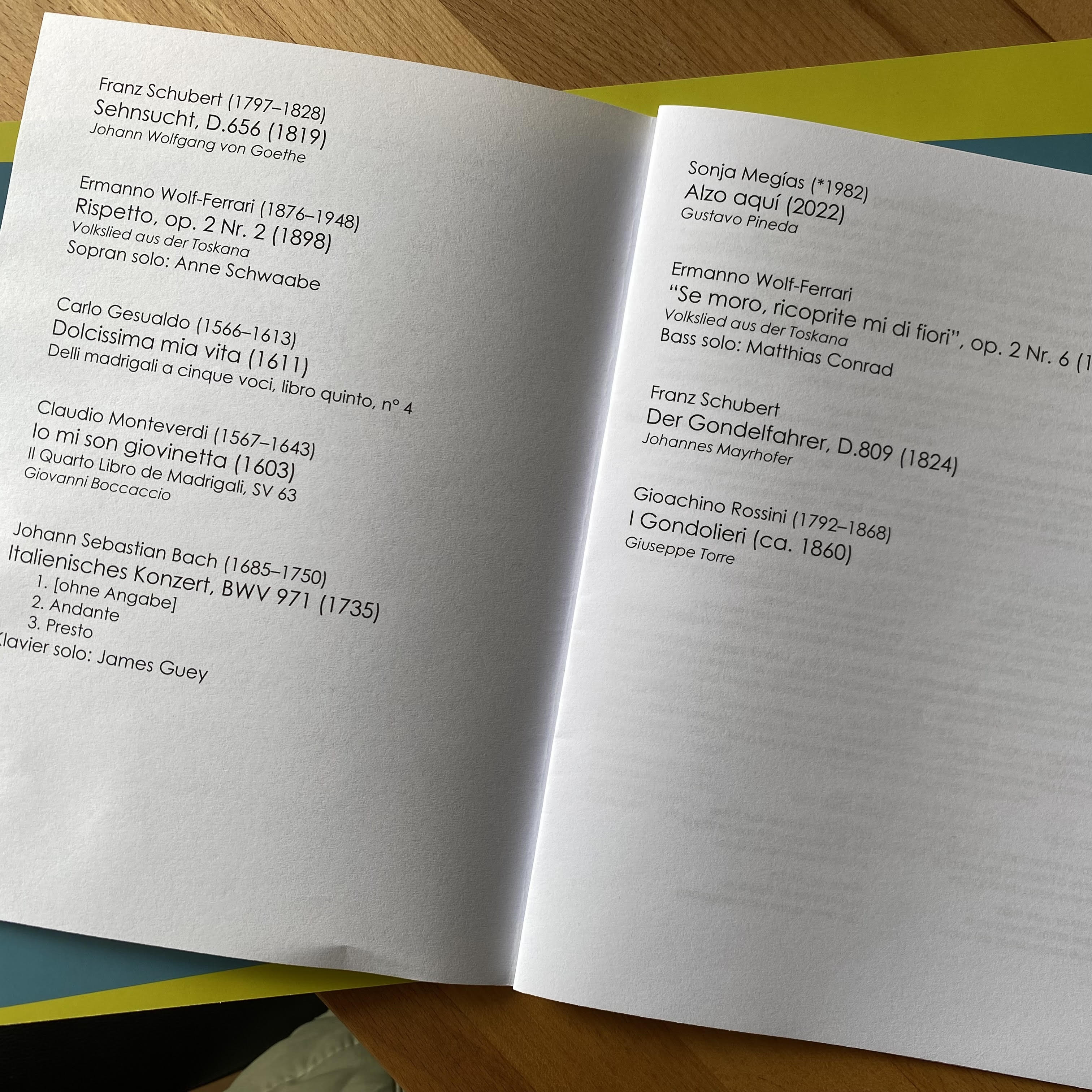 And if that wasn’t enough we then launched into Wolf-Ferrari’s Rispetto for double choir and soprano solo. The concert was simply called “Süden” (South) and was meant to conjure up the warmth of Italy and Spain as we head into Autumn. Conductor Paul Schäffer had even asked Spanish composer Sonja Magias for a piece. A mystical, atmospheric piece of Mayan poetry Alzo aqui. Wonderful stuff.