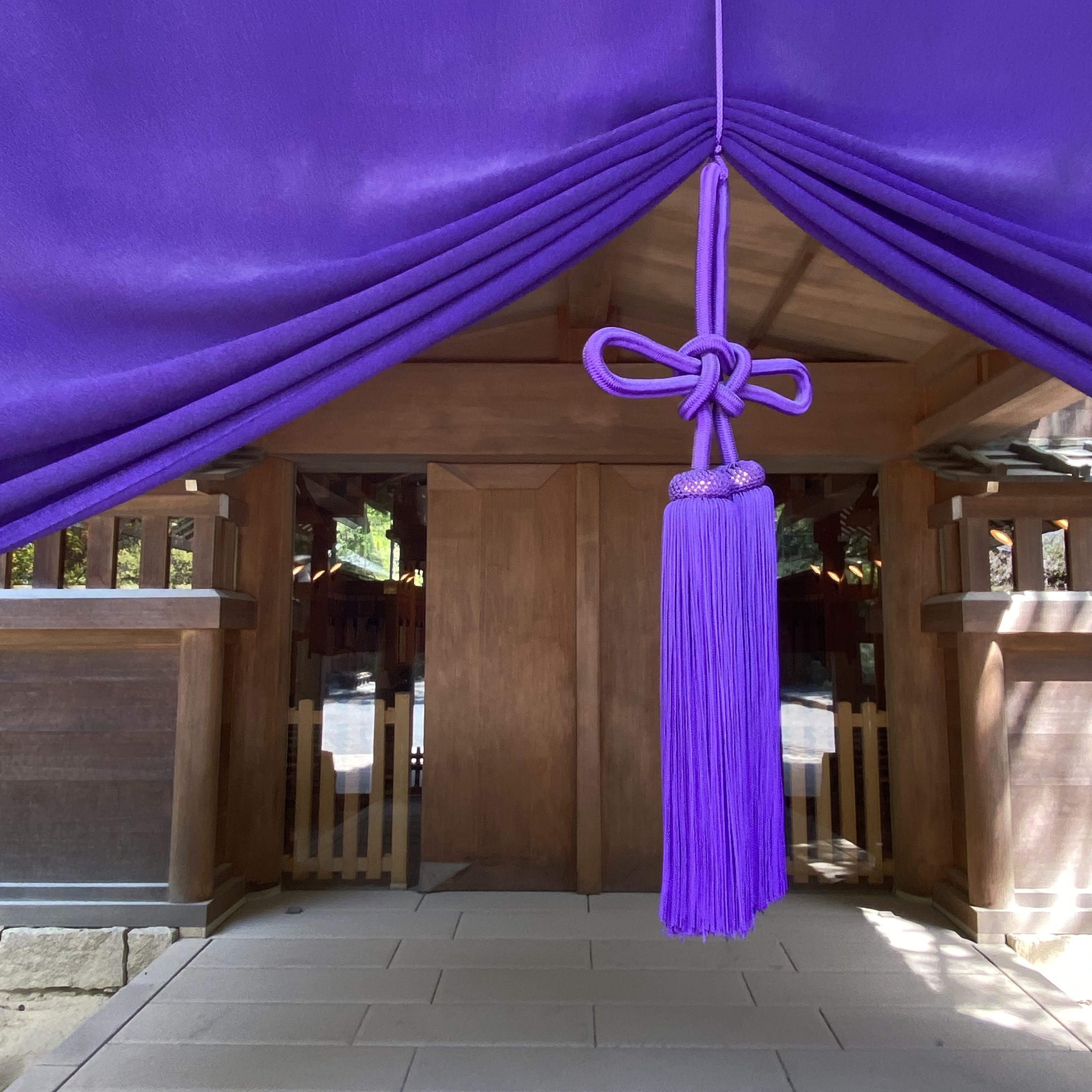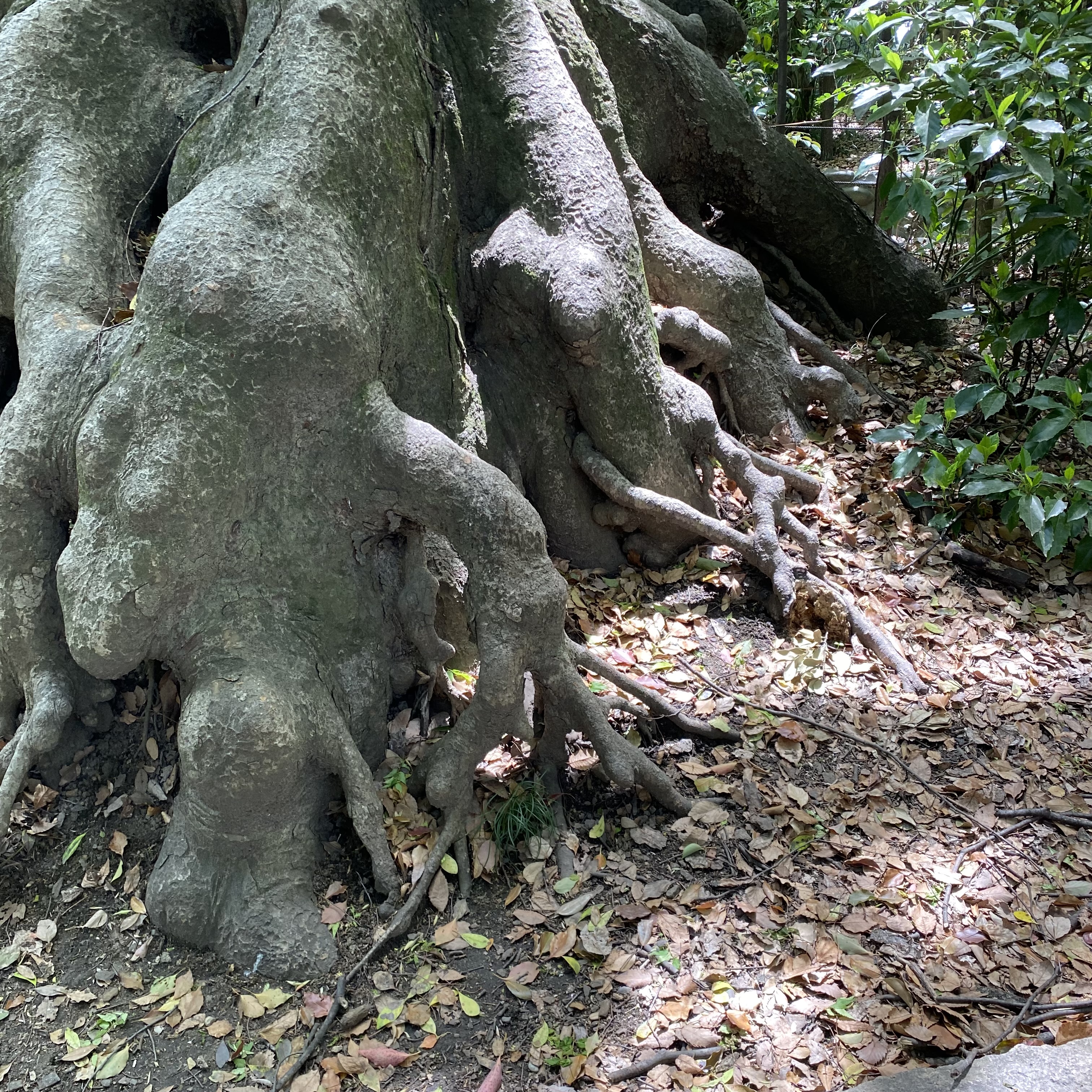 This old camphor tree has the Shimenawa (rope) wrapped around it for ritual purification, and is decorated with Shide (paper streamers) to demarcate it as a holy place and to ward off evil spirits…..