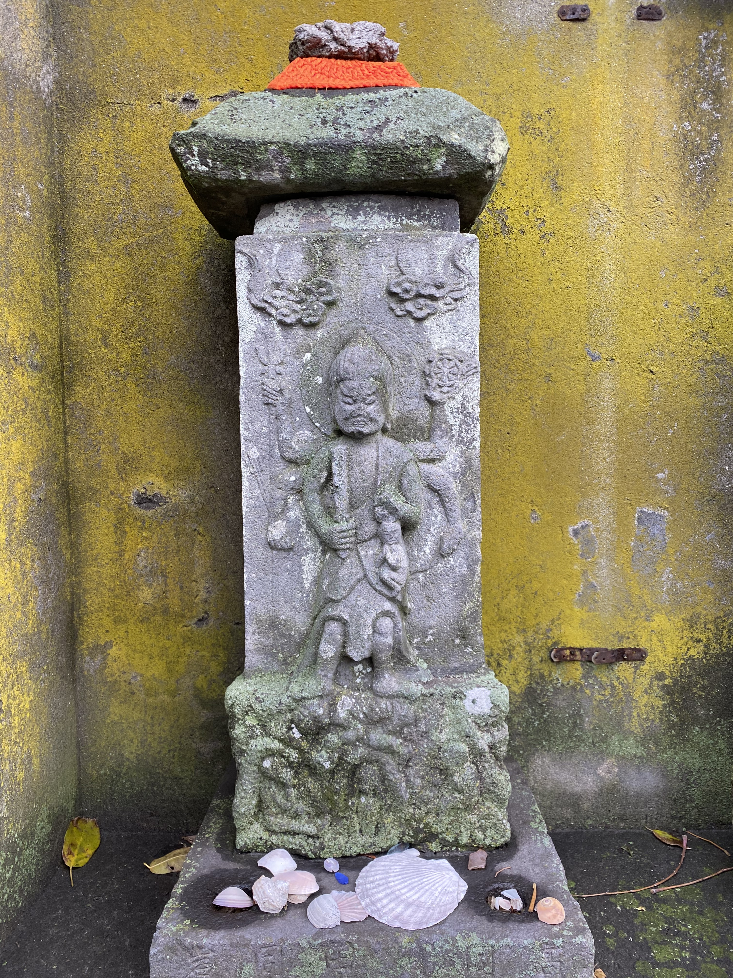 ๐”…… I used to have a quiet life guarding this shrine. It’s got a bit battered by sea winds in it’s time, but it’s still there….