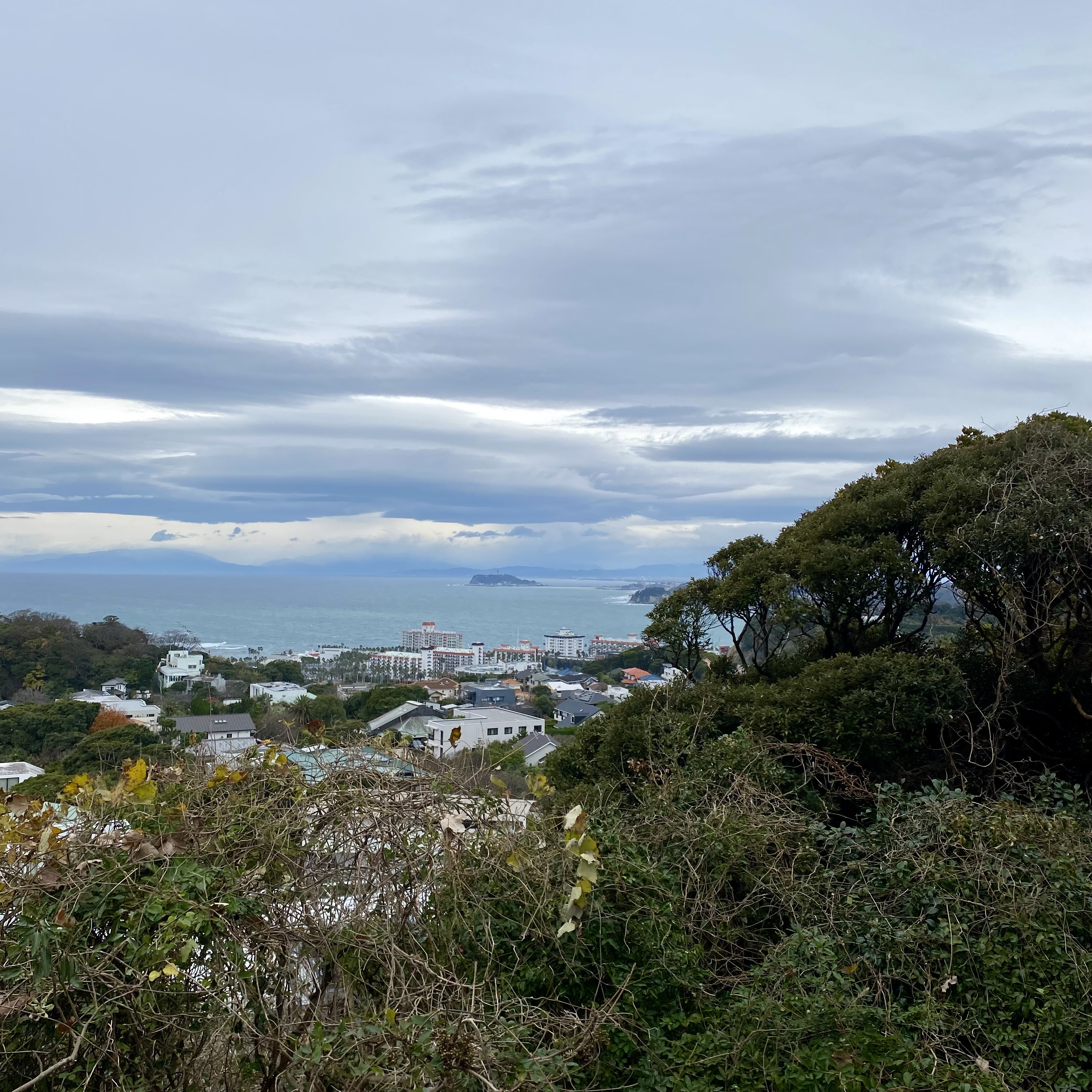 …..and google maps, I find myself on my third day in Japan in the hills near a town called Zushi, (no, not Sushi) about an hour south of Yokohama….In the distance you can see Enoshima Island, which is beside Kamakura (The place with the really big Buddha)