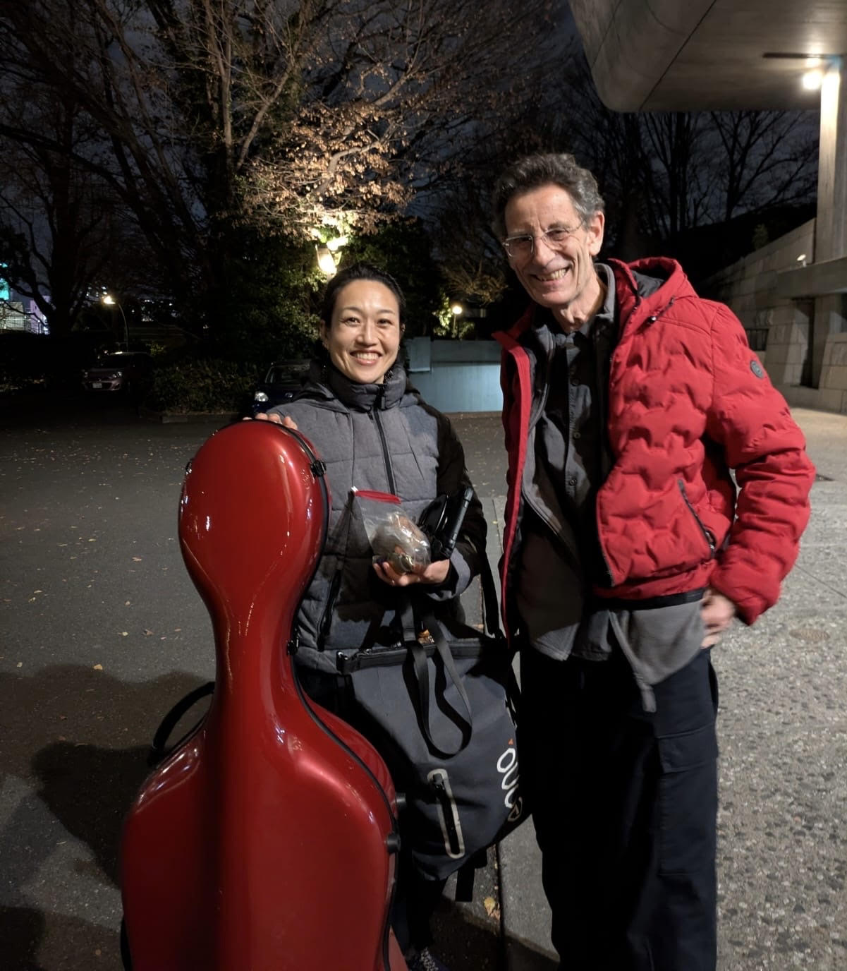 I tracked down ‘cellist Aki.san at the Tokyo Bunka Kaikan – the Metropolitan Festival Hall, where she was playing in the Faurรฉ Requiem.