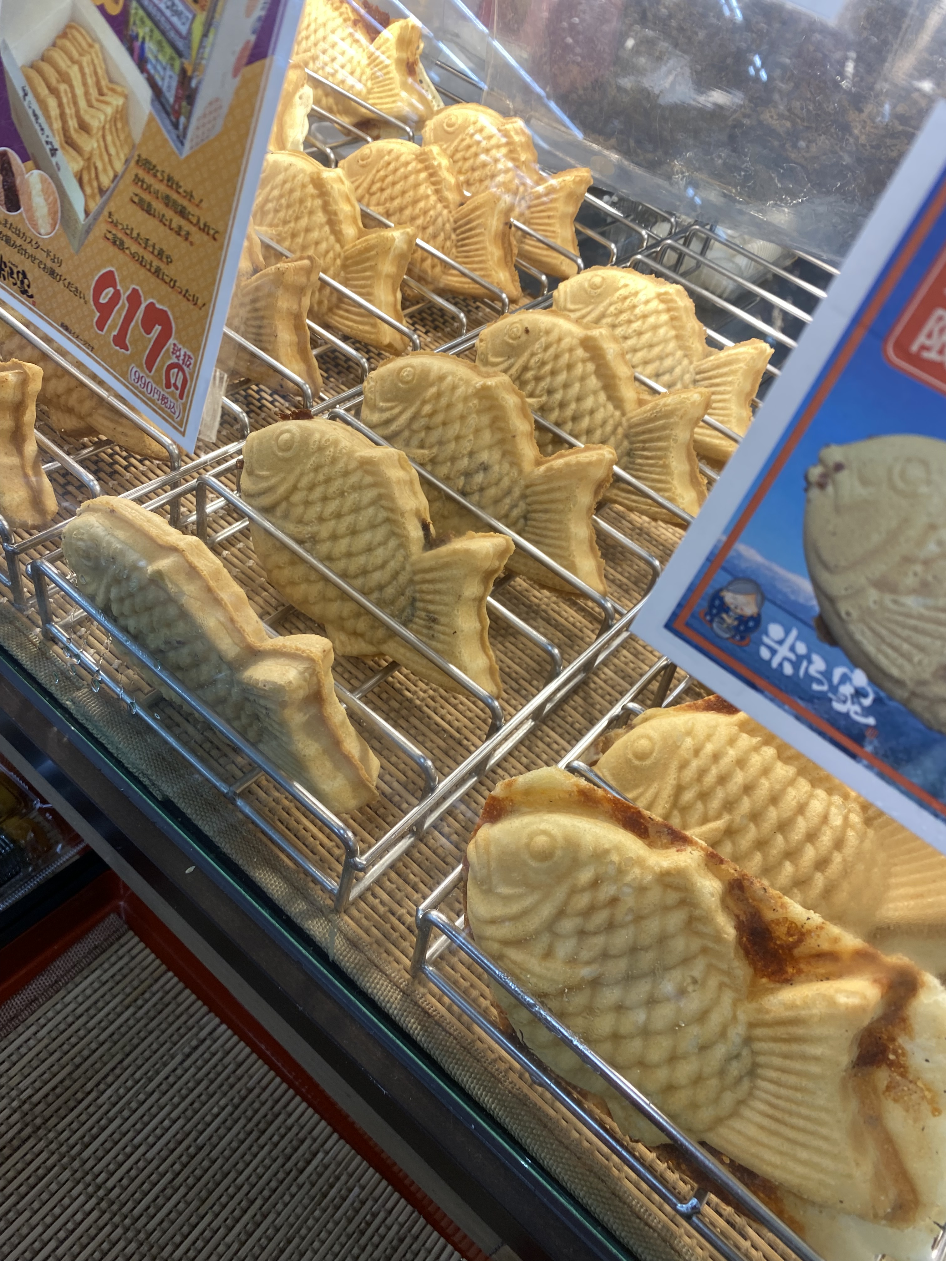 ๐ I had one of these Taiyaki (a waffle shaped like a sea bream and filled with sweet beans ) with a coffee….having got lost in the local mega store.