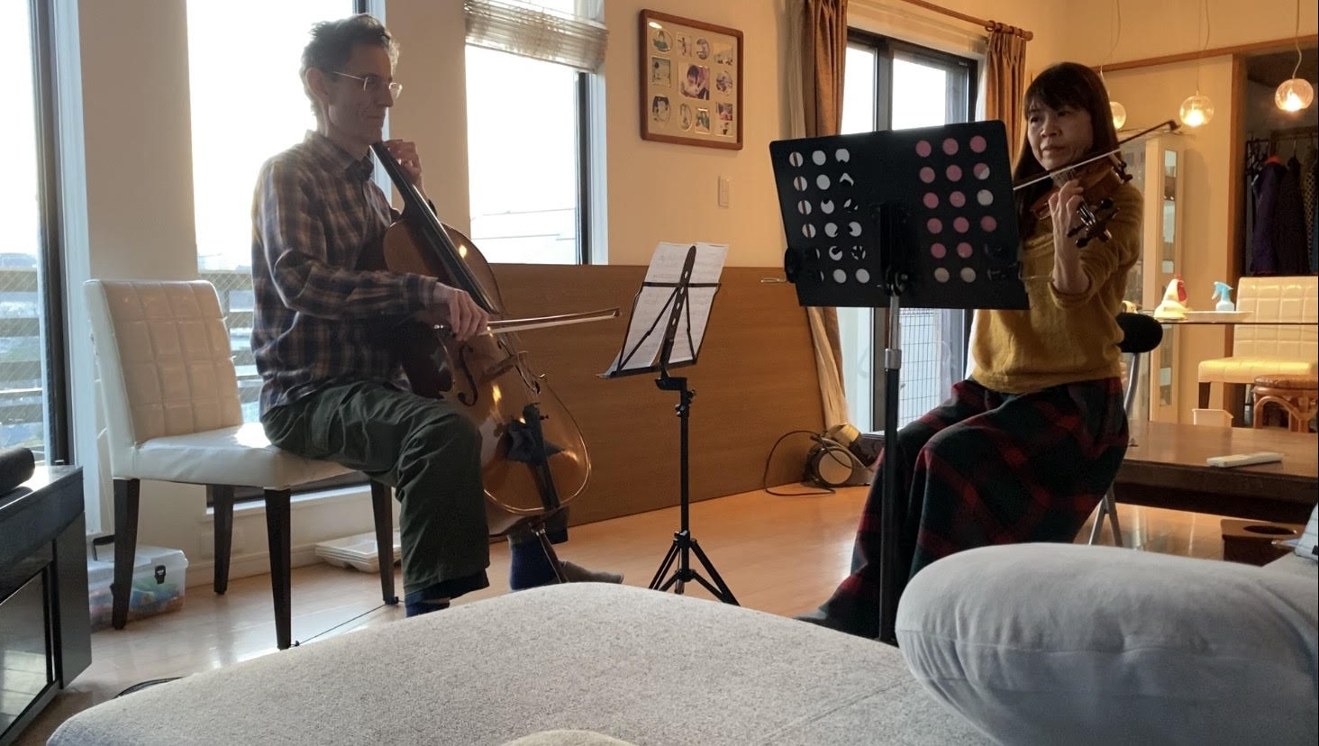 ๐ Well, this week Tomoko and myself finally got it together…..(no, I am not inserting the recording here. Nobody wants to hear two amateur musicians scraping away ๐ )