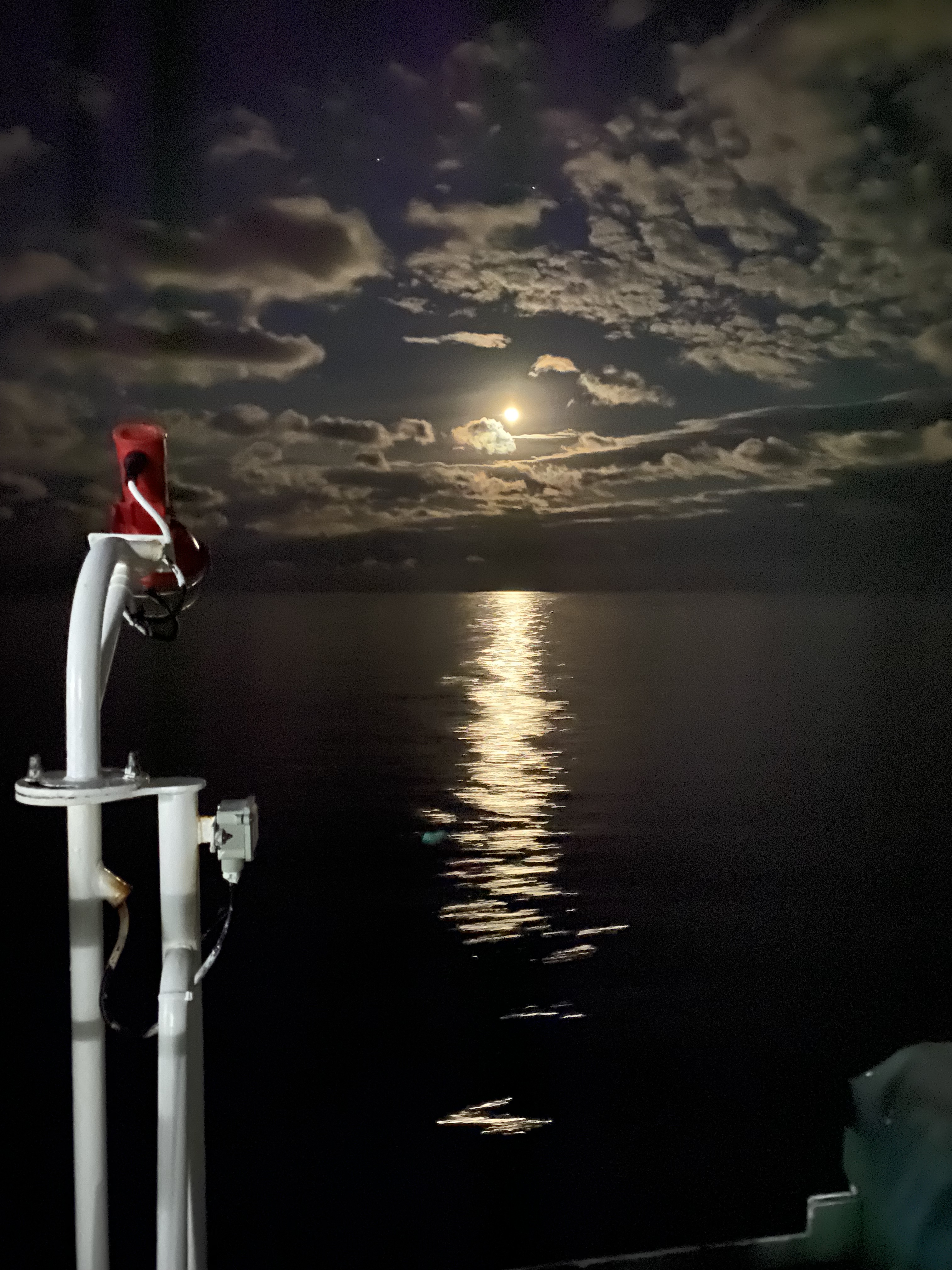 Nothing. Until you climb up to Deck 7 ……No ship lights on the horizon, no moon (yet)…How did those early mariners feel without the blazing lights of the modern ship?