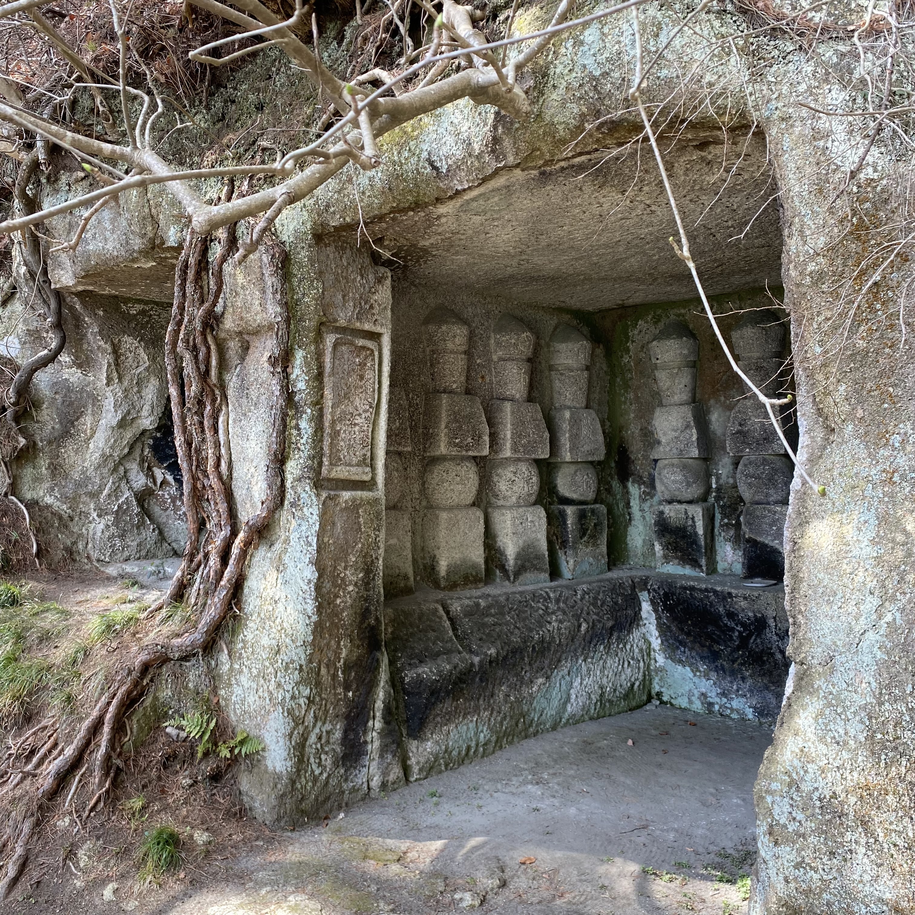 ๐ I had not done my homework (sometimes a good thing) and didn’t really know what I was looking at. The island had apparently been a retreat for monks, and is littered with manifestations of Buddha, the caves being for meditation. There are also Shinto shrines, and inscriptions from the famous poet Bashou.