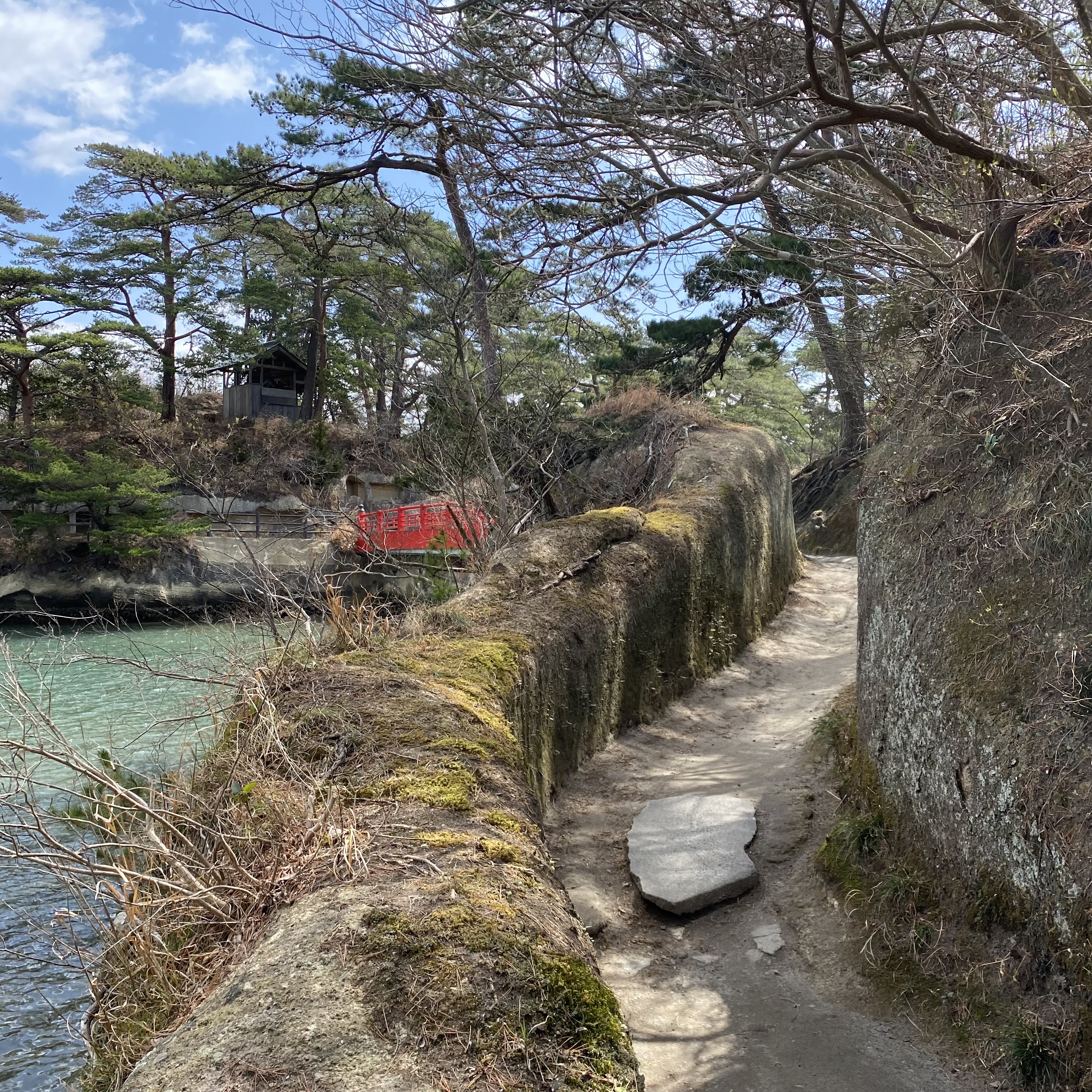 ๐ One of the first things I saw after leaving the station was one of those helpful signboards with all the sight-seeing spots marked. At least two islands connected to the land by bridges, with woodland walks and temples. But my map showed another small island which was not mentioned in the tourist blurb. Ojima. Some instinct in me (which rebels against being told what to see) led me to walk in this direction. I passed through a boat yard, and followed a trail cut out of the rock…….
