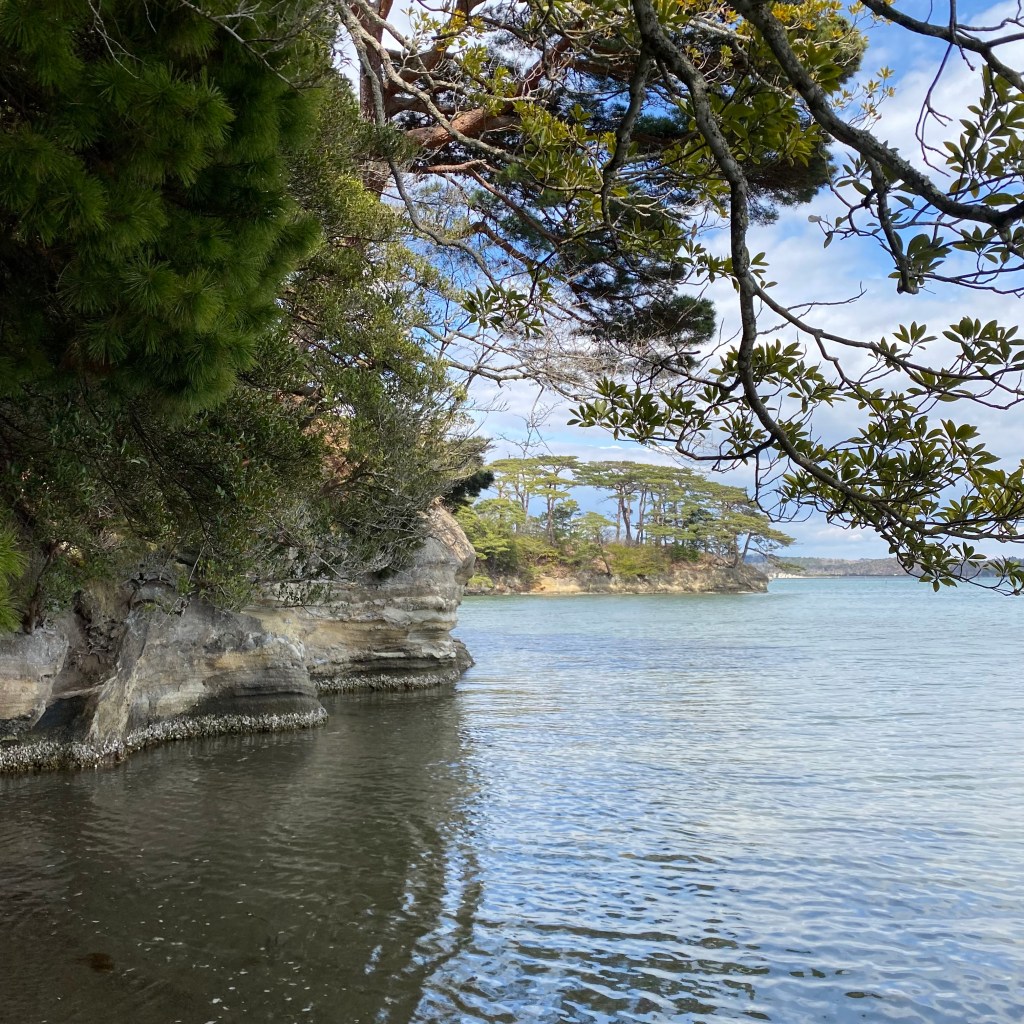๐ This tranquil bay, dotted with little islands, was spared the worst of the 2011 Tohoku earthquake and Tsunami, being protected by Miyato Island/peninsular to the east (the red dot on the map is where I am)…..