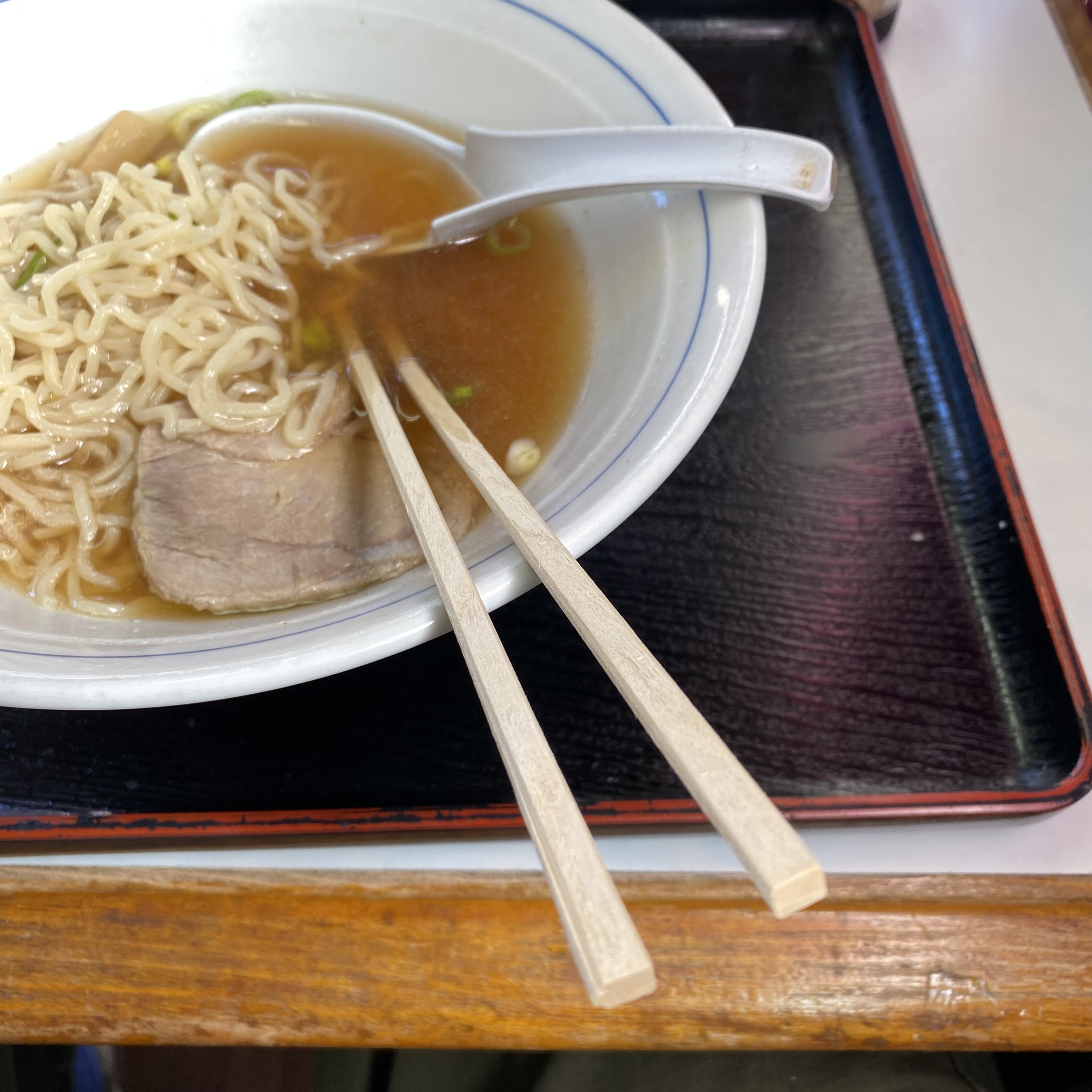 ๐ Sightseeing is hungry work. The wind was cold, and all I needed was a warm soup. All the restaurants on the sea front were offering either oysters or beef tongue (ใใ ใ a local speciality). I felt like neither. Then I noticed it, having walked passed it once and dismissed it as off the scale regarding grubbiness and a general shabby air. There was just a glass door with words pasted onto it ใฉใผใกใณ (Ramen) ใซใฌใผ (Curry). I stepped inside. A little old man stood up from his television and gave me a broad smile of greeting….”Yes, of course I have Ramen…just take a seat….”