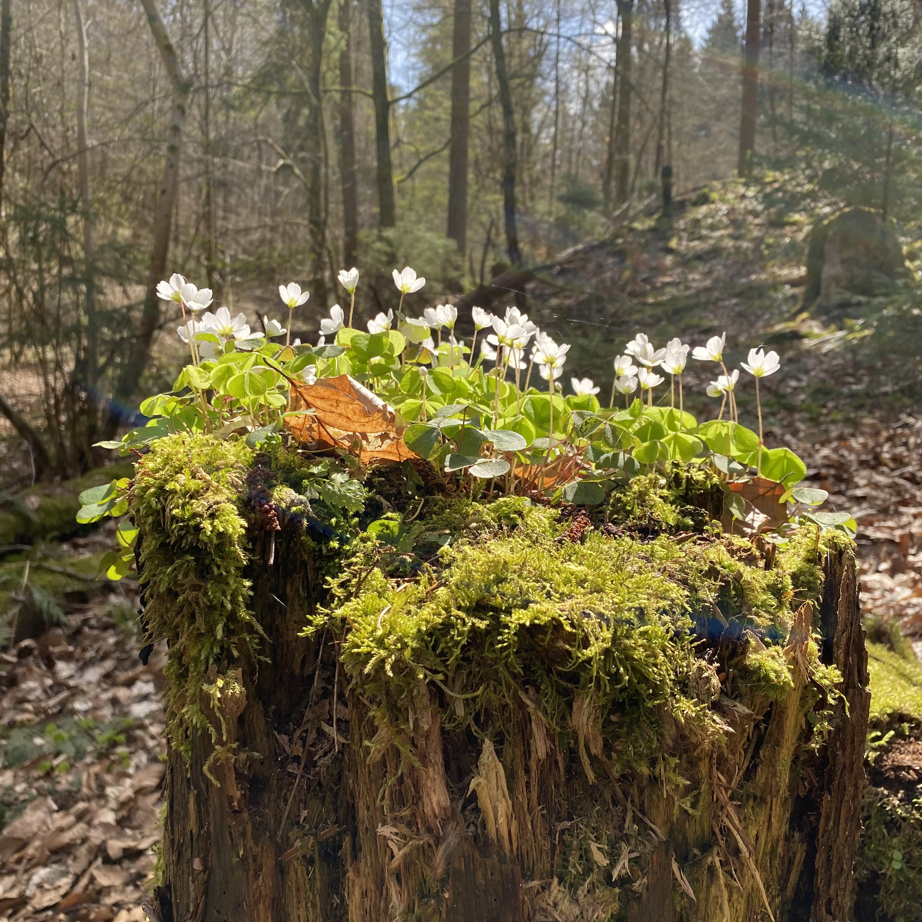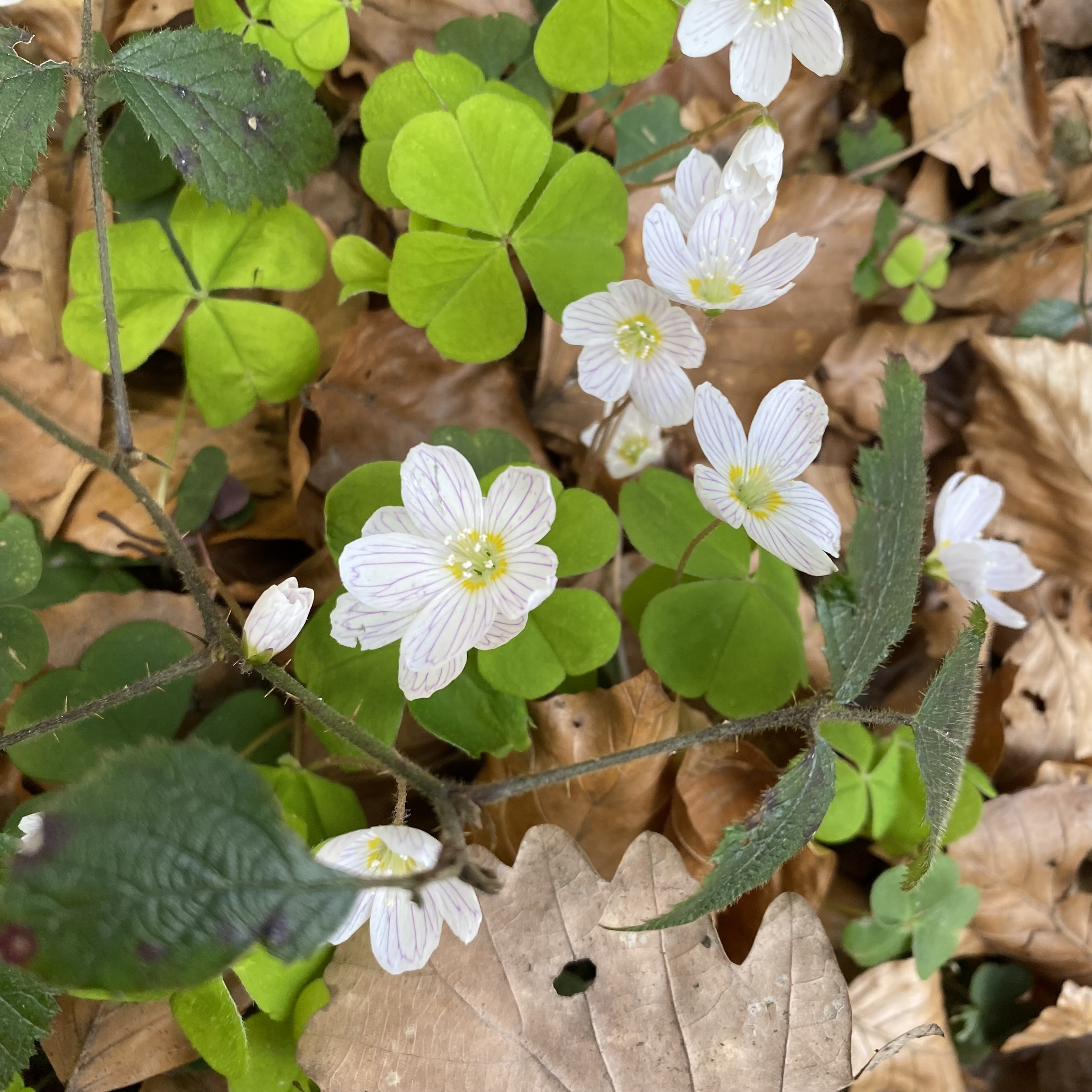 …and at ground level inumerable wild anemones push up through last years’ leaves…..