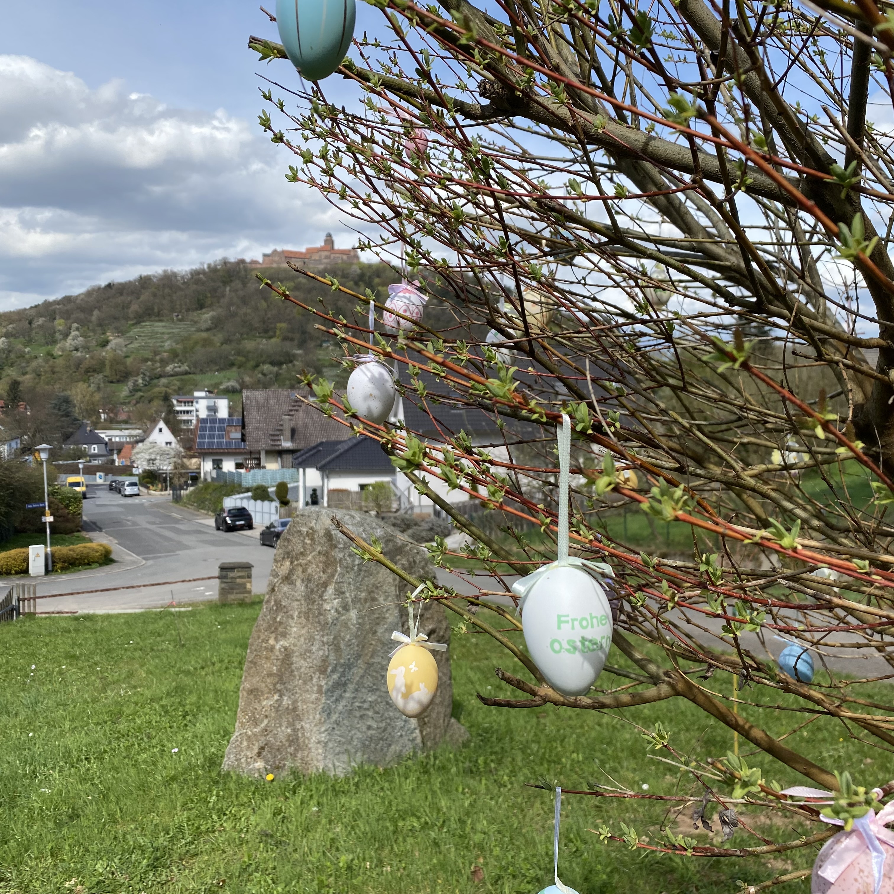 I start the steep climb to the castle. Frohes Ostern, yes, …..