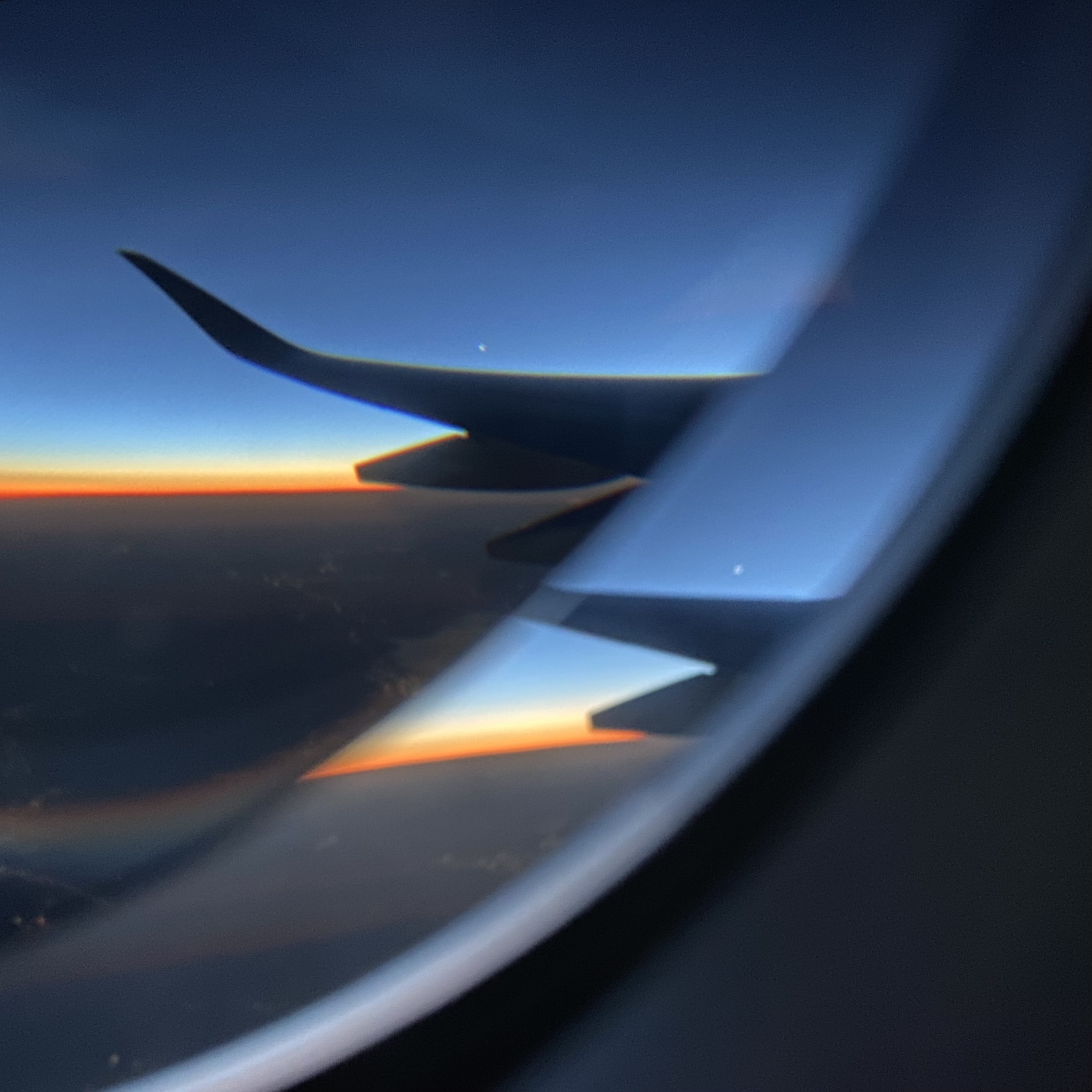 ▷ I love the way that, as the aircraft tilts, evening sun moves over the cabin….